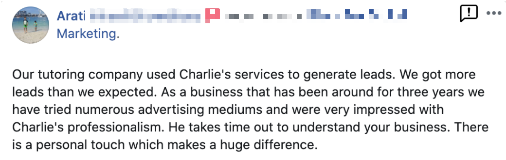 Charlie has taught hundreds of businesses how to create hyper profitable social media ads. The best part, most had no existing marketing experience when they started!